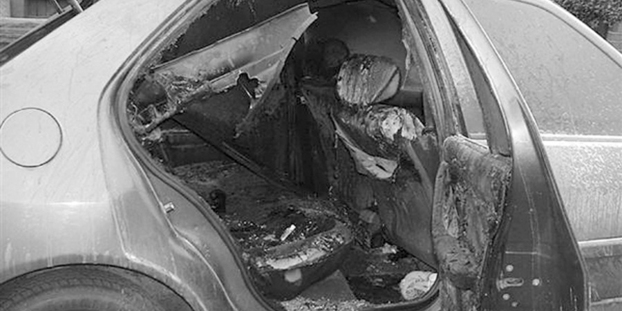 Das ausgebrannte Auto eines linken Ehepaars in Leeds. Vor dem Anschlag war das Fahrzeug samt Kennzeichen auf Redwatch veröffentlicht worden.